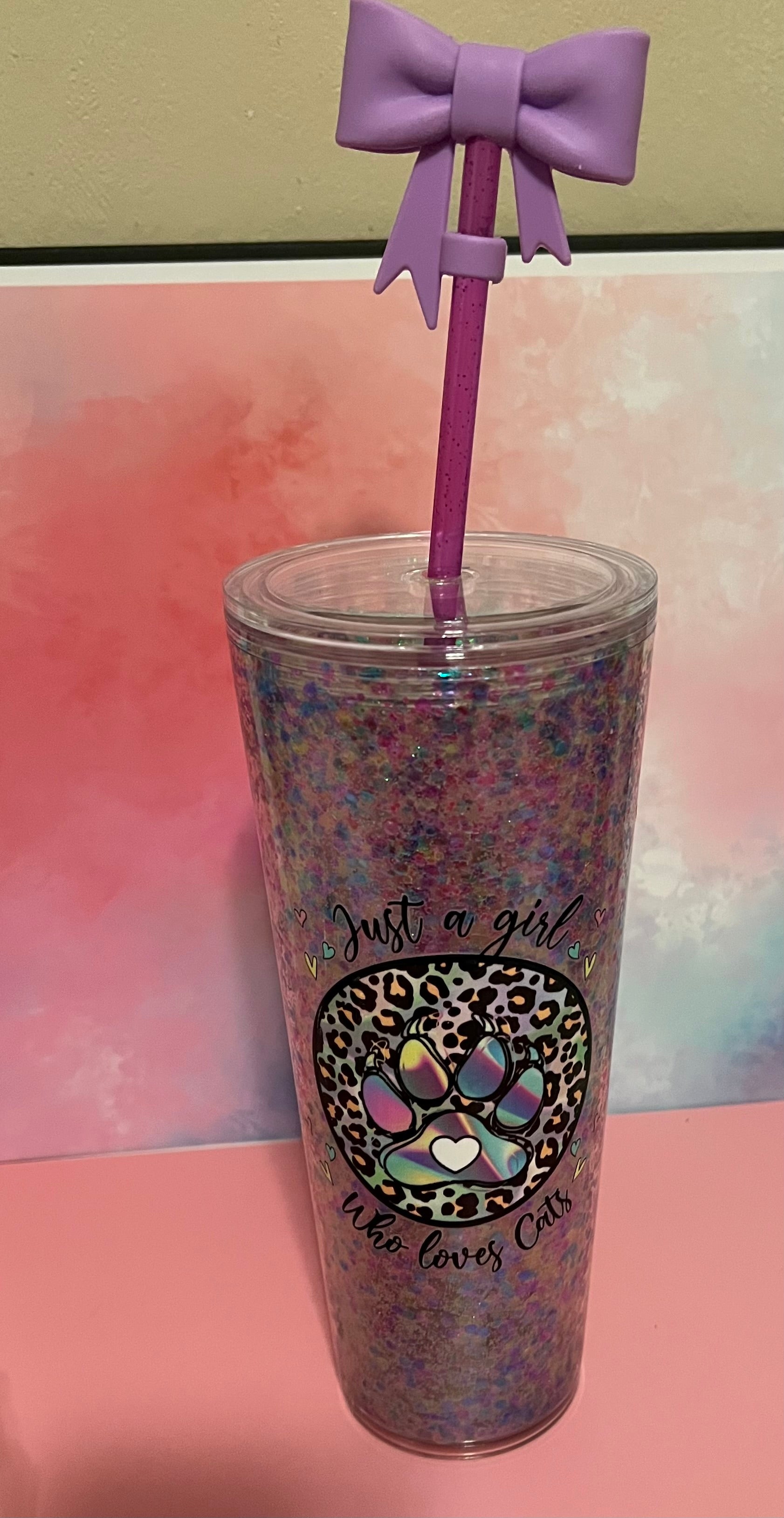 πŸˆβ€β¬›24 oz glitter filled tumbler with just a girl who loves cats decal